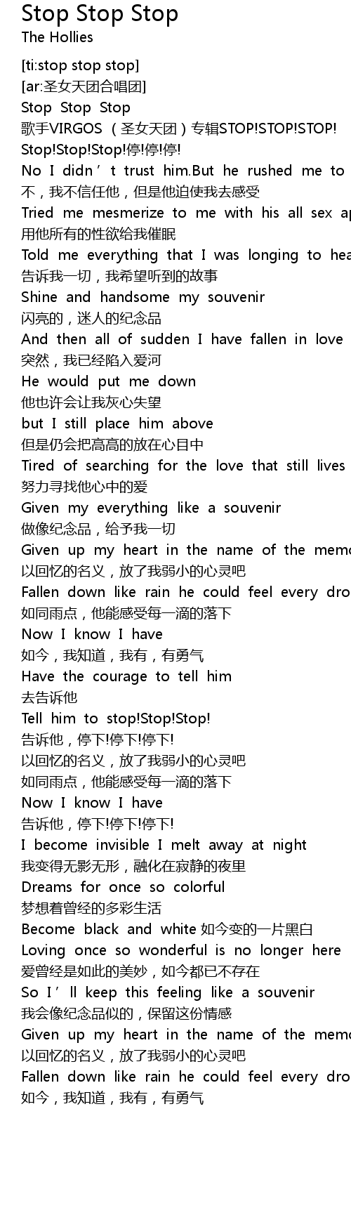 | [00:26.810] | 歌手VIRGOS (圣女天团)专辑STOP!STOP!STOP! |