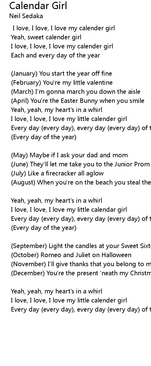 Yeah, sweet calender girl |