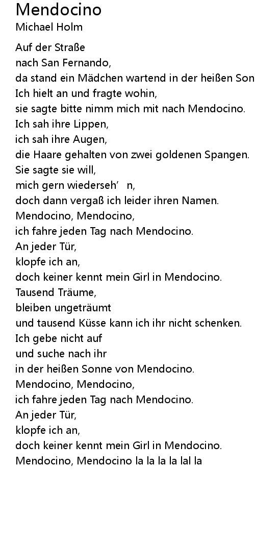 | doch keiner kennt mein Girl in Mendocino. | |