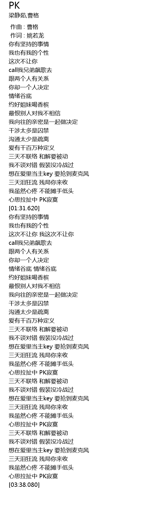 | [03:32.920] | 心思拉扯中 PK寂寞 |