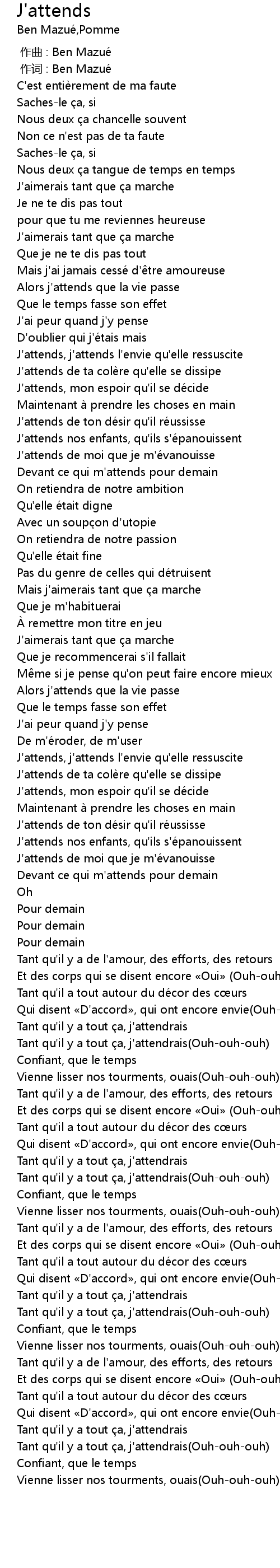 | [00:01.000] | 作词 : Ben Mazué |