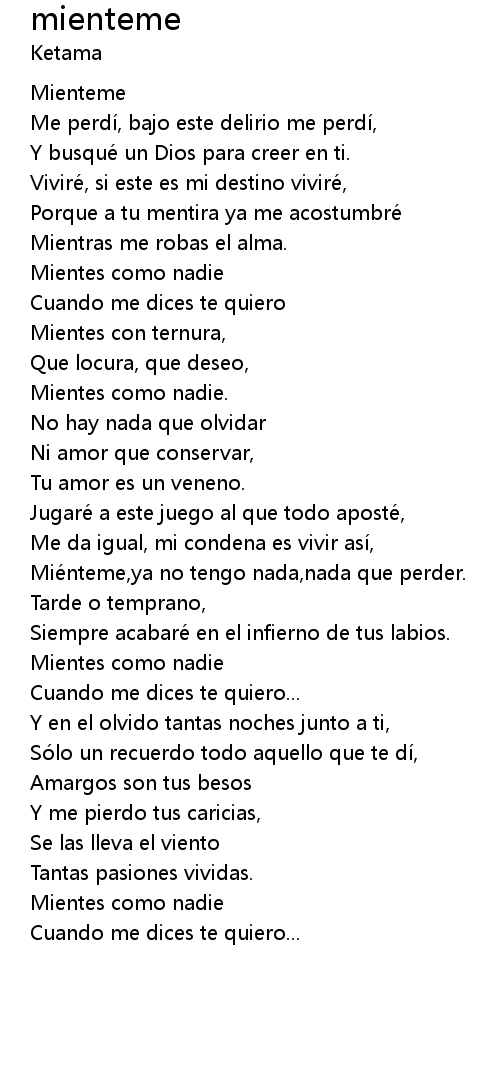 | Miénteme,ya no tengo nada,nada que perder. | |