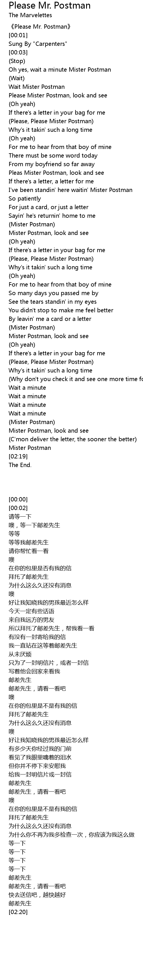 | [00:05] | Oh yes, wait a minute Mister Postman |