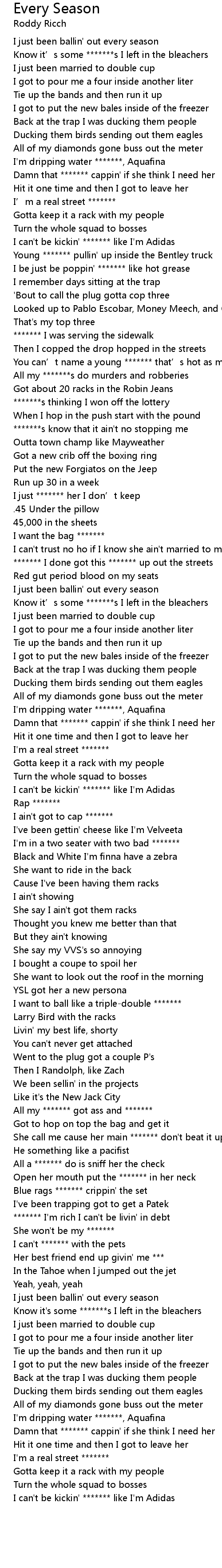 | [01:30.00] | Know it’s some *******s I left in the bleachers |