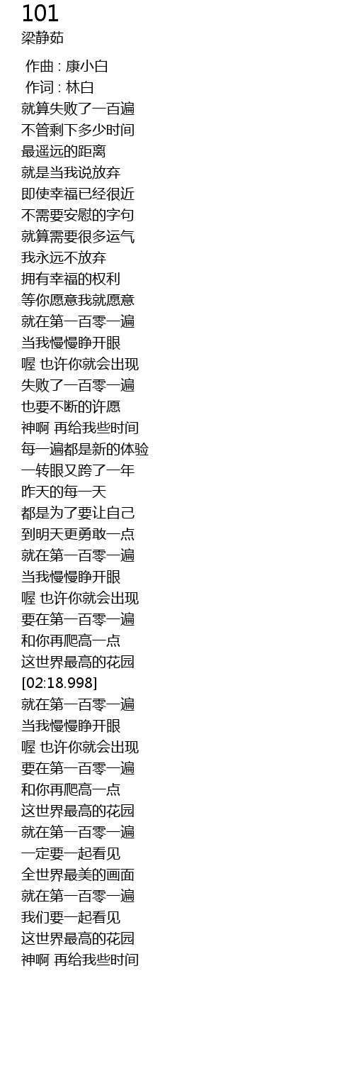| [02:36.297] | yào zài dì yī bǎi líng yī biàn |