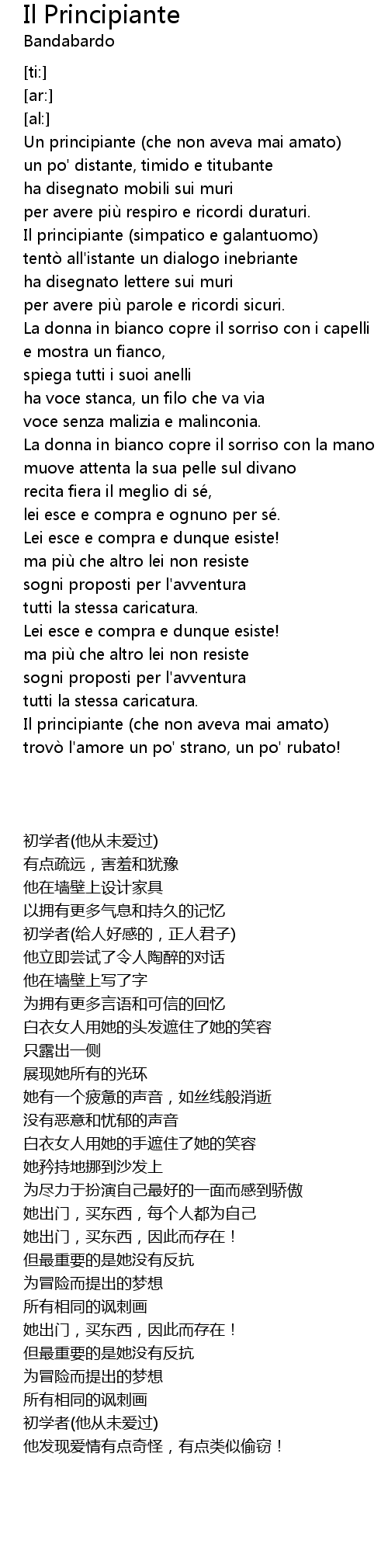 | [00:27.99] | Il principiante (simpatico e galantuomo) |