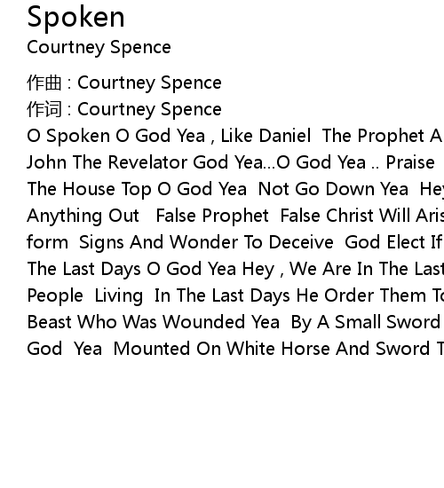 | 作词 : Courtney Spence | |