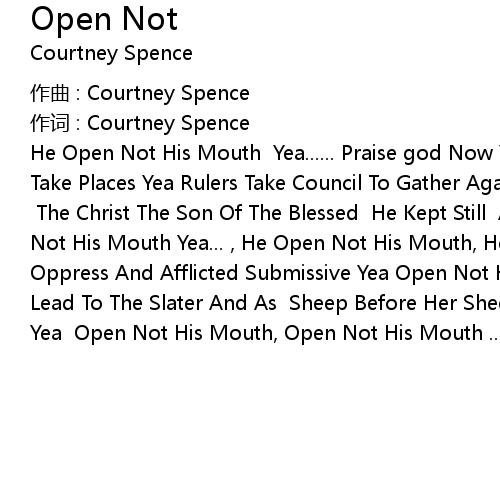| He Open Not His Mouth Yea...... Praise god Now Yea... The Kings Of The Earth Take Places Yea Rulers Take Council To Gather Against The Lords Anointed Are You The Christ The Son Of The Blessed He Kept Still And Did Not Answer At All He Not His Mouth Yea... , He Open Not His Mouth, He Open Not His Mouth He Was Oppress And Afflicted Submissive Yea Open Not His Mouth Like A Lamb That Is Lead To The Slater And As Sheep Before Her Sheerer Is Dumb Open Not His Mouth Yea Open Not His Mouth, Open Not His Mouth ..... |