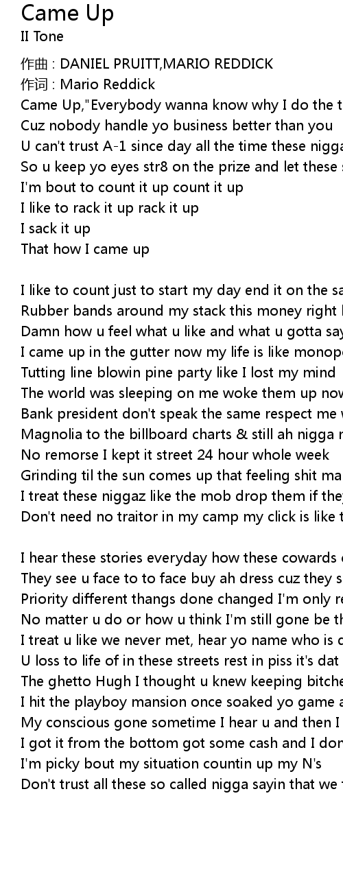| Came Up,"Everybody wanna know why I do the things I do | |