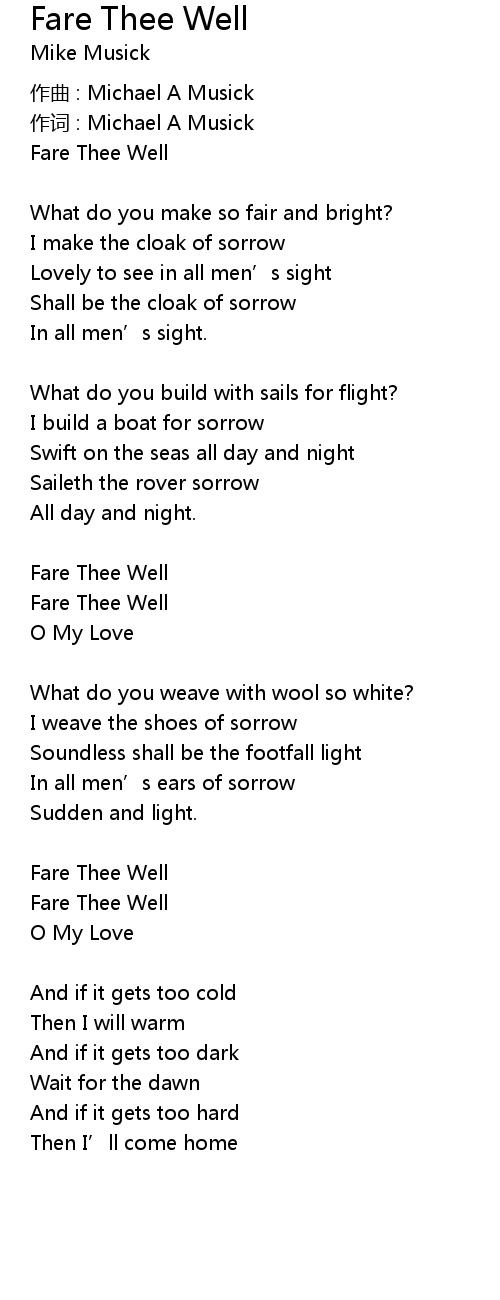 | Fare Thee Well | |