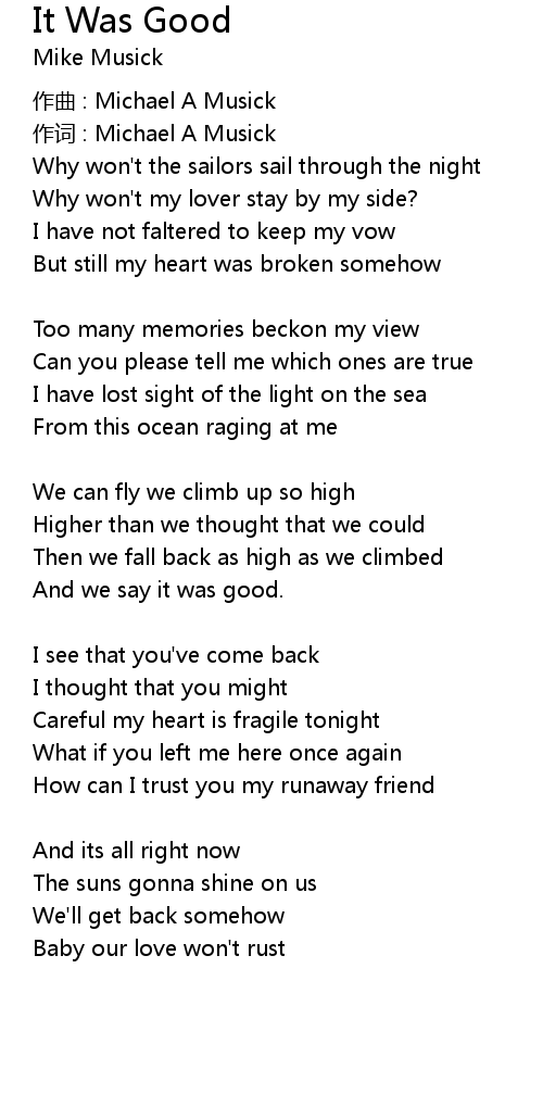 | 作词 : Michael A Musick | |
