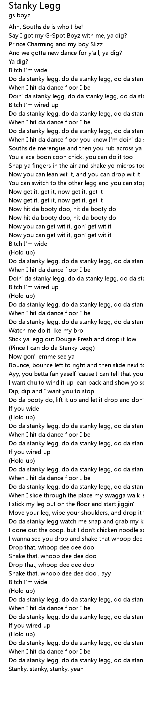 Doin' da stanky legg, do da stanky legg, do da stanky legg |