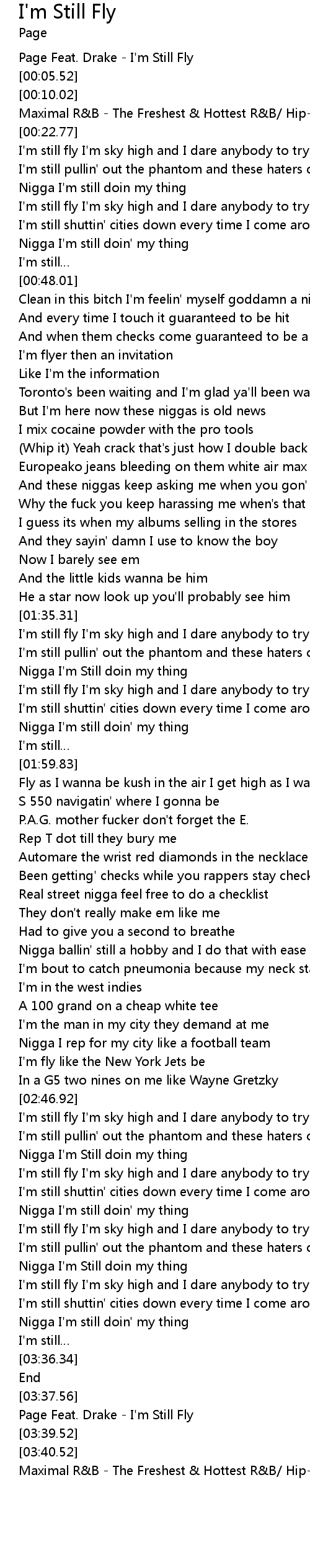 | [00:00.02] | Page Feat. Drake I' m Still Fly |