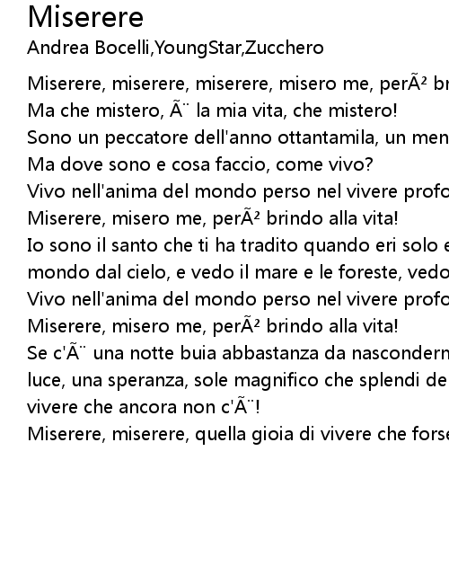| Miserere, miserere, quella gioia di vivere che forse ancora non c'. |