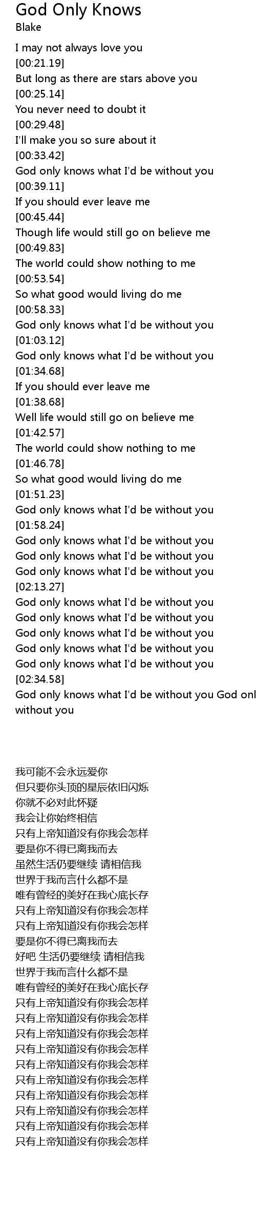 God only knows what I'd be without you God only knows what I'd be without you |