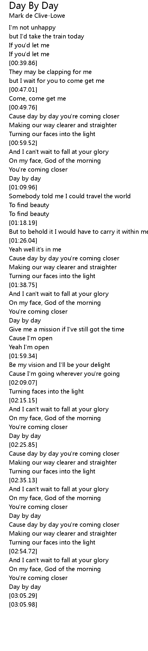 Cause day by day you're coming closer |
