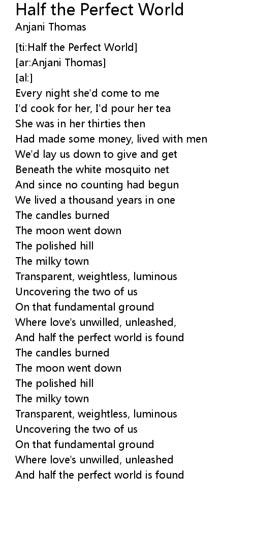 [ti:Half the Perfect World] |
