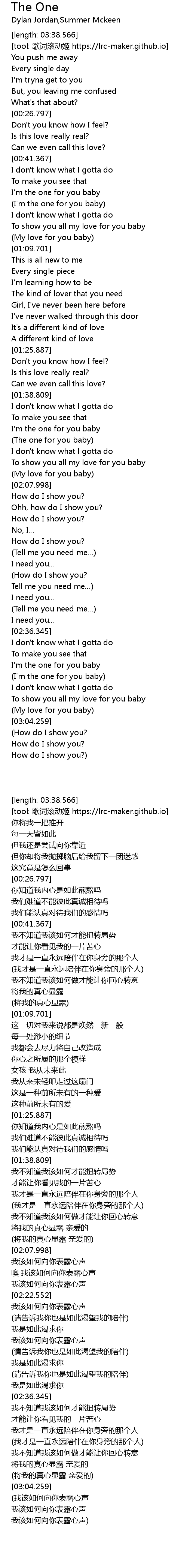 | [00:51.877] | I' m the one for you baby |