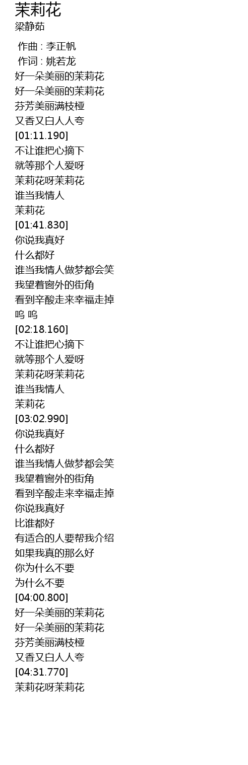 | [02:59.610] | 茉莉花 |