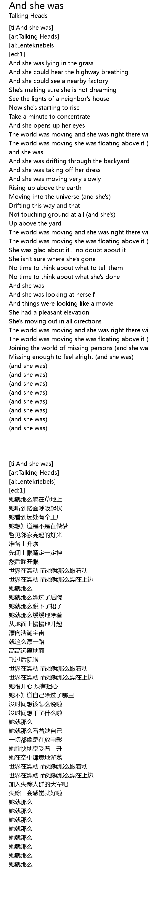 [ti:And she was] |