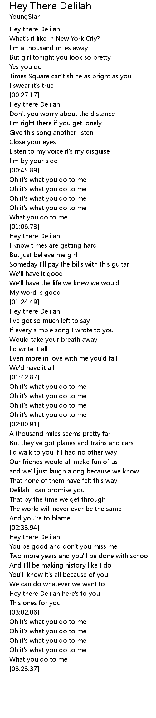 Hey there Delilah here's to you |