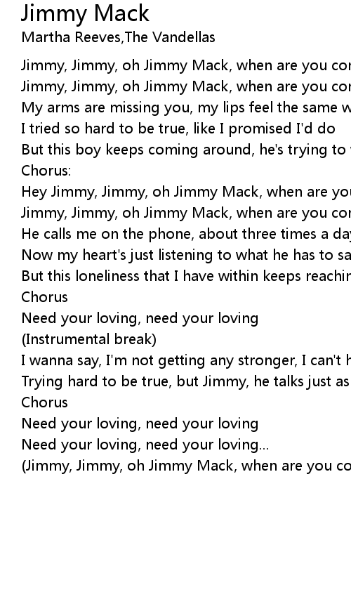 (Jimmy, Jimmy, oh Jimmy Mack, when are you coming back) (repeats out)... |