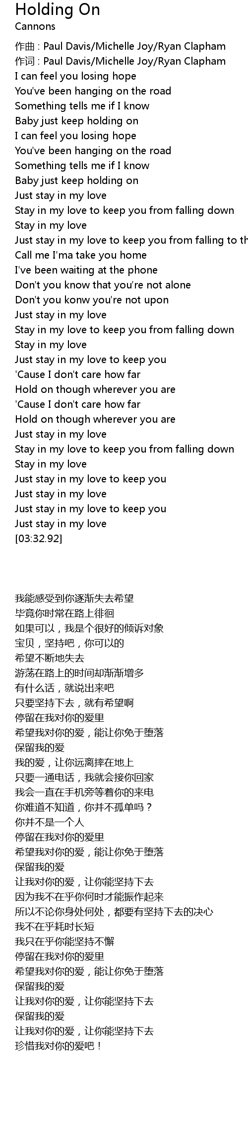 | [00:01.29] | 作词 : Paul Davis/Michelle Joy/Ryan Clapham |