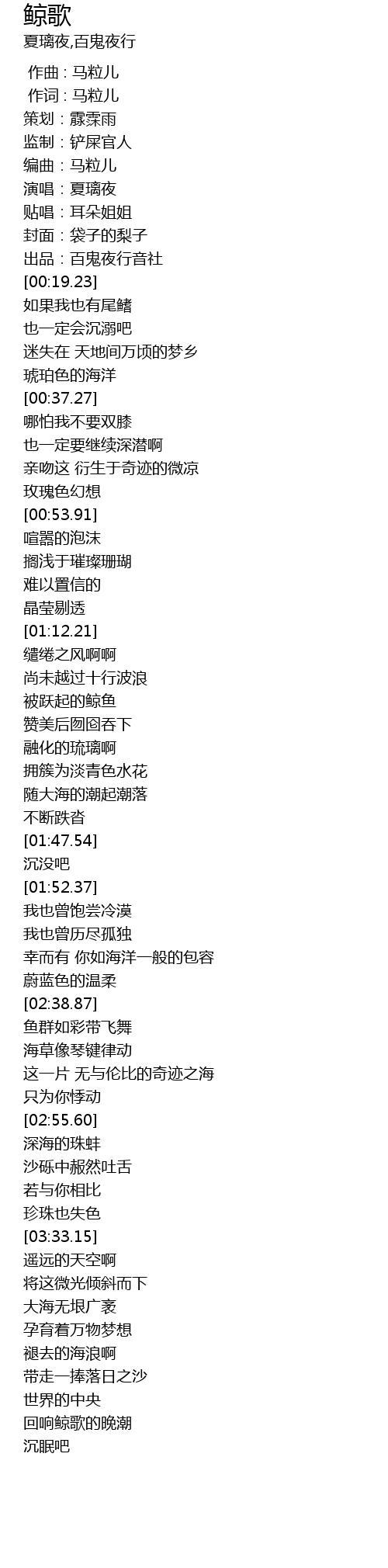 | [00:12.60] | 编曲:马粒儿 |