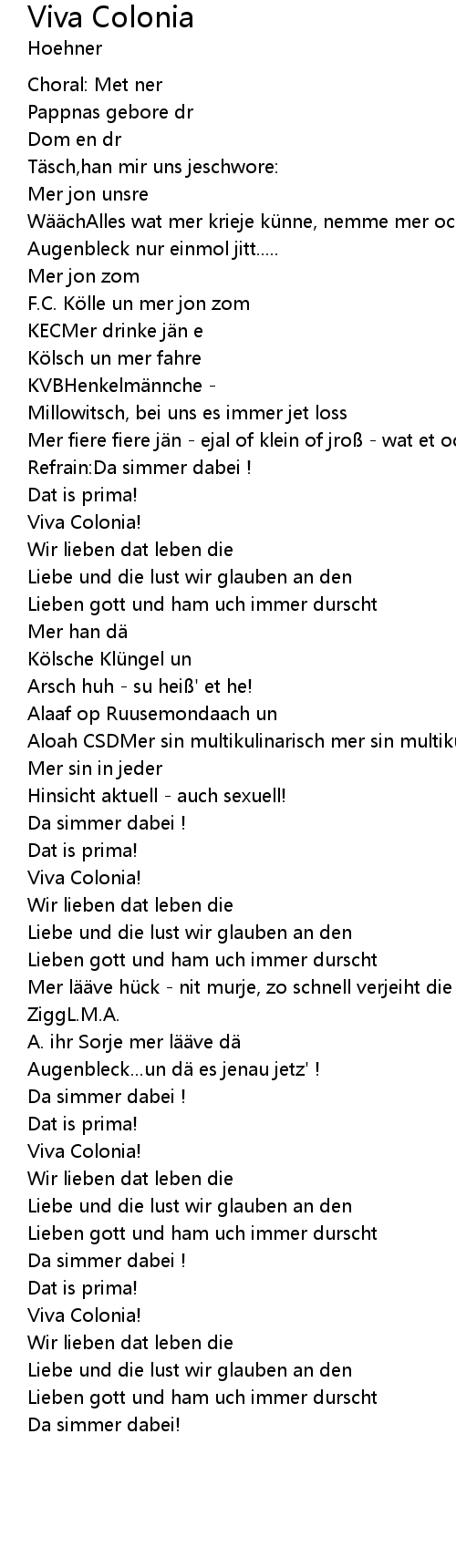 | Song | Viva Colonia |