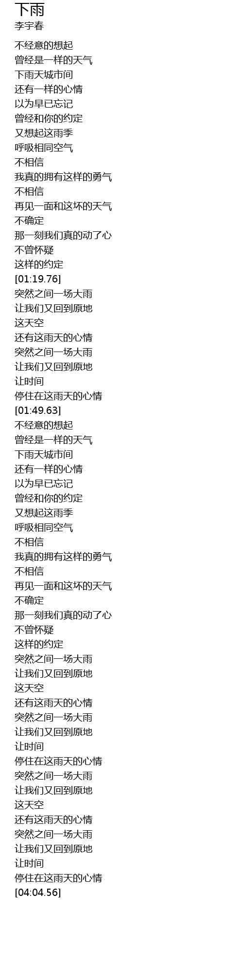 | [01:34.34] | tū rán zhī jiān yī chǎng dà yǔ |