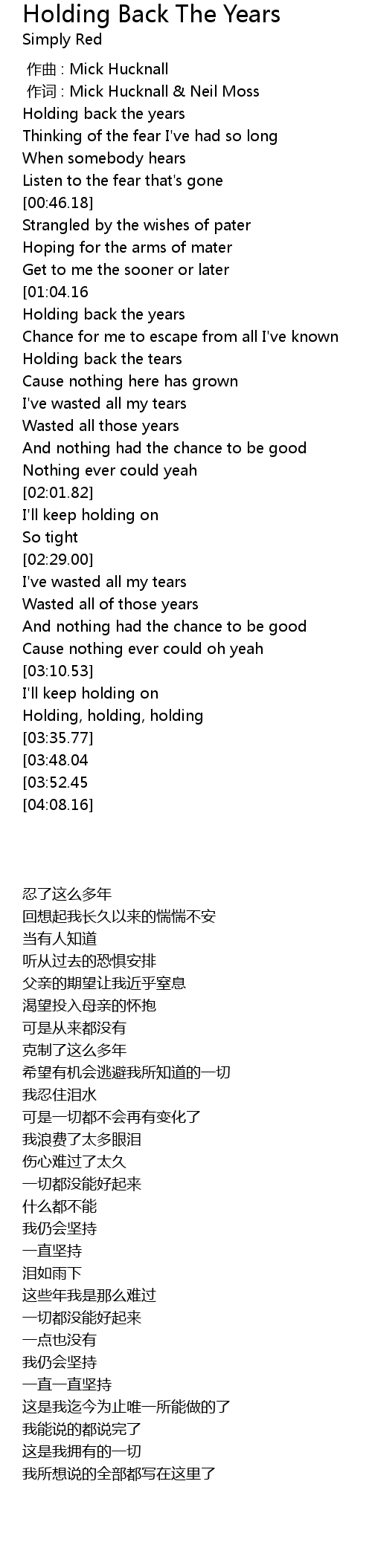 | [01:16.39] | Holding back the years |