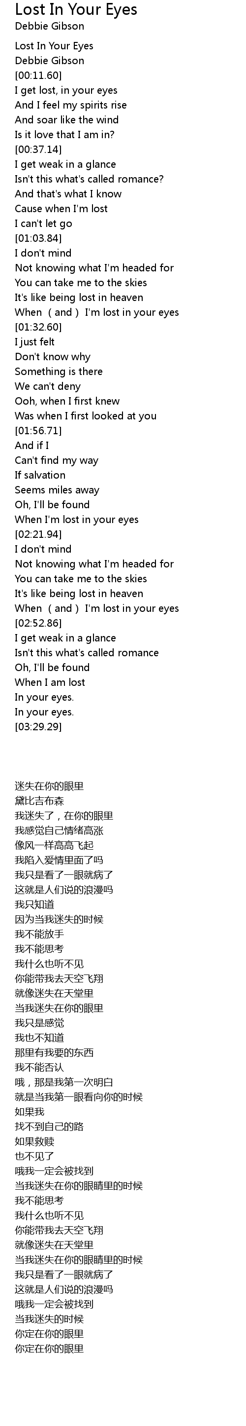 | [01:26.50] | When (and) I'm lost in your eyes |