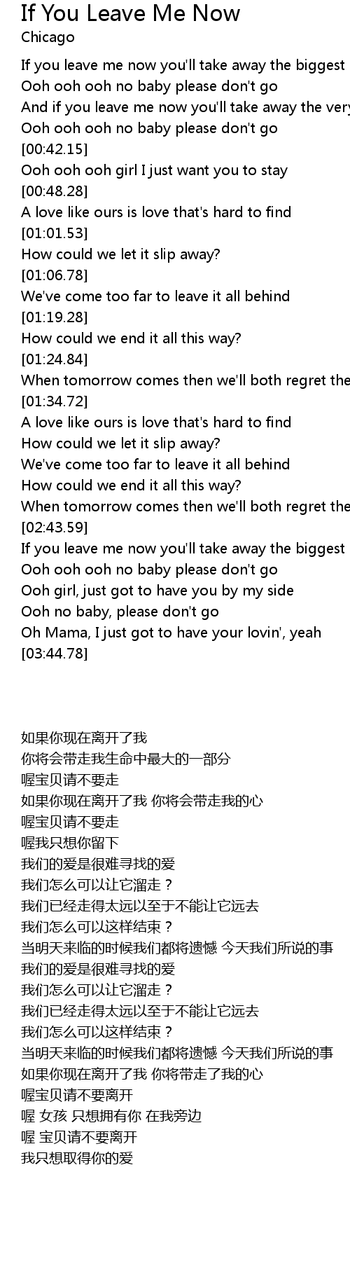 If you leave me now you'll take away the biggest part of me |