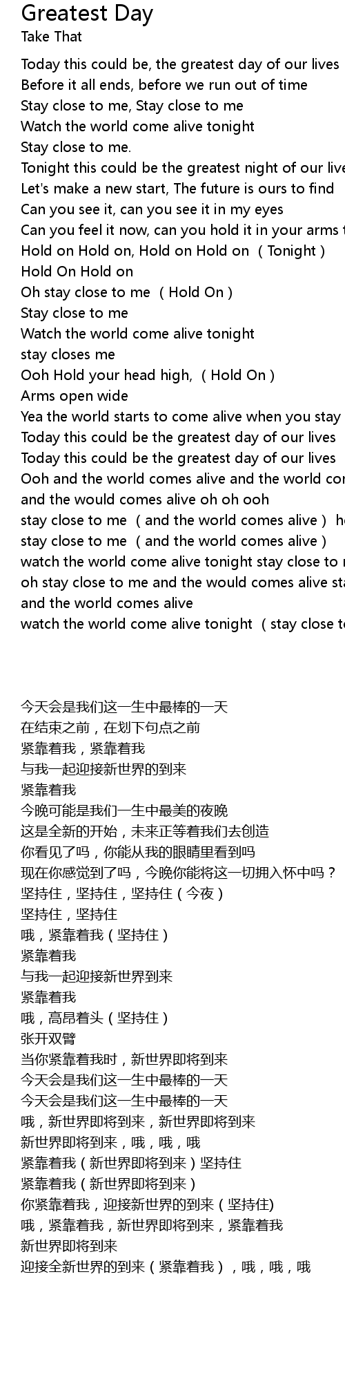 | [00:18.540] | Today this could be, the greatest day of our lives |