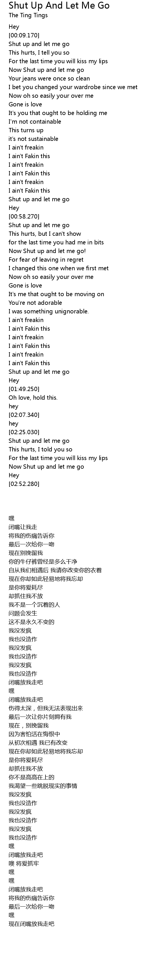 Shut up and let me go |