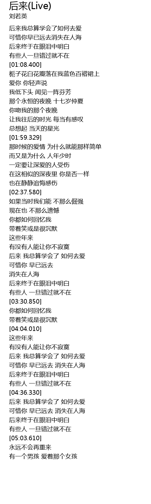 | Song | 后来(Live) |
