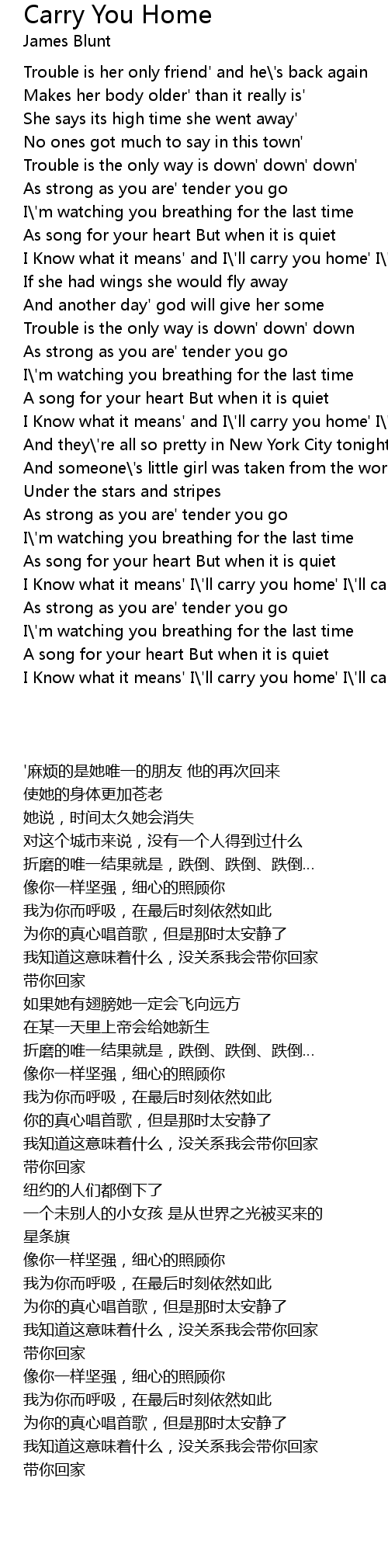 I Know what it means' I\'ll carry you home' I\'ll carry you home |