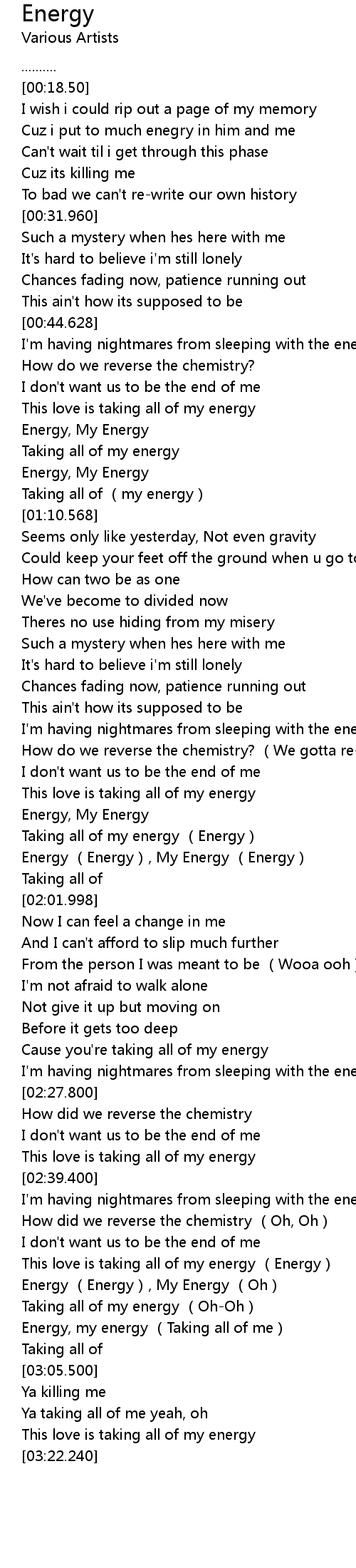 | [03:00.890] | Energy, my energy (Taking all of me) |