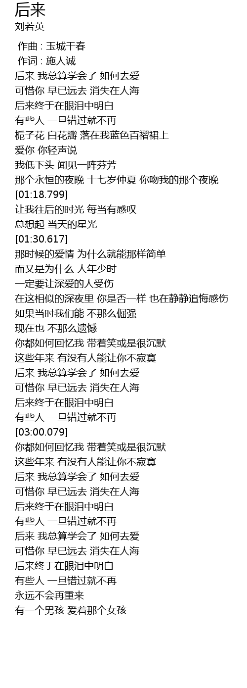 | Song | 后来 |