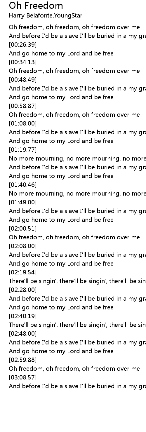 Oh freedom, oh freedom, oh freedom over me |