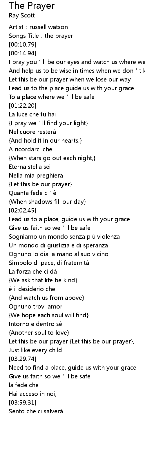 | [00:05.60] | Songs Title:the prayer |