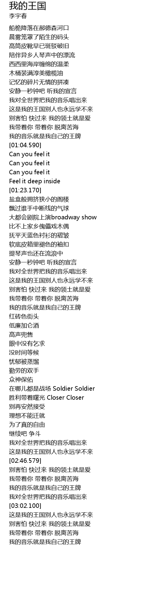 | [02:26.900] | 在哪儿都是战场 Soldier Soldier |