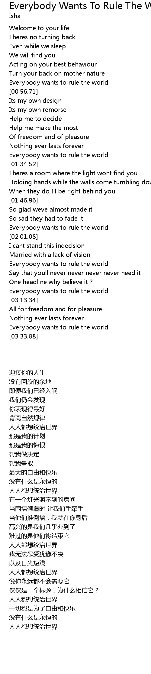 Everybody wants to rule the world |