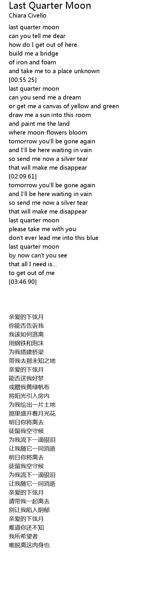| [03:28.00] | last quarter moon |