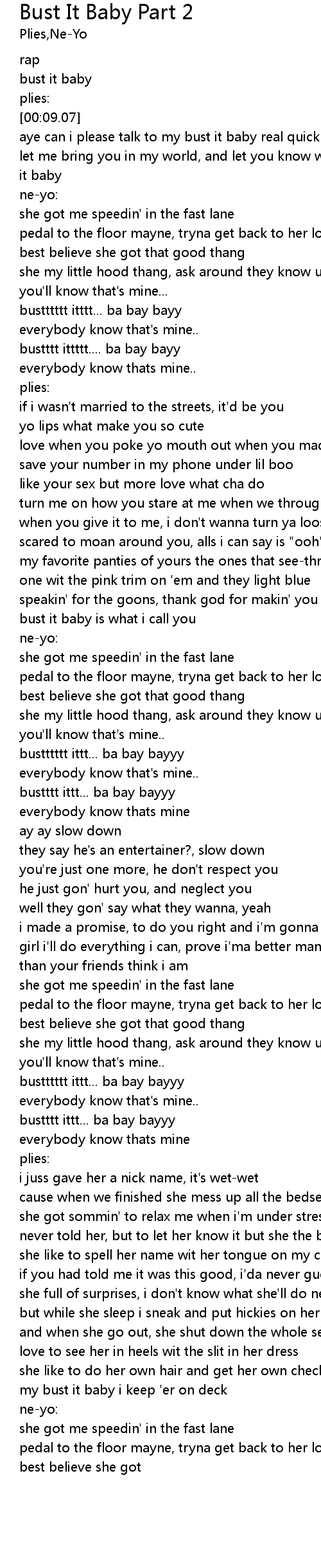 | [00:18.39] | let me bring you in my world, and let you know what i call my lil bust it baby |