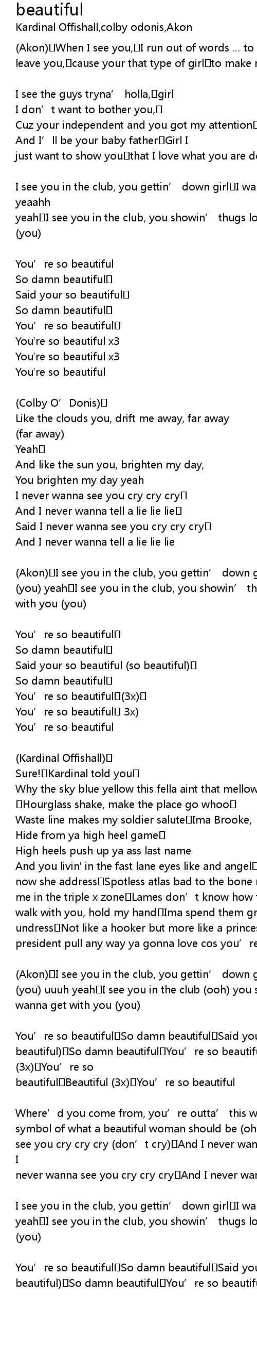 | beautiful) So damn beautiful You’re so beautiful Beautiful (3x) You’re so | |