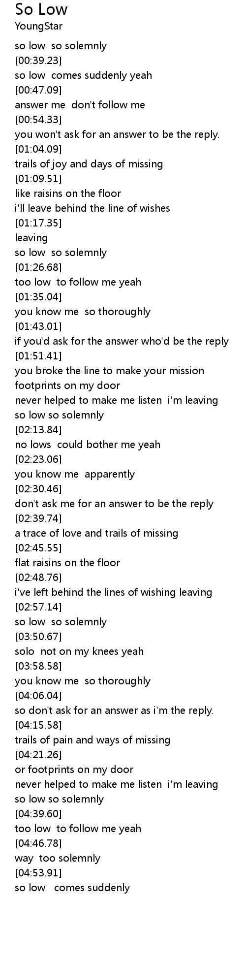 so low comes suddenly yeah |