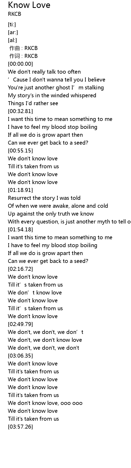 | [03:44.63] | We don't know love |