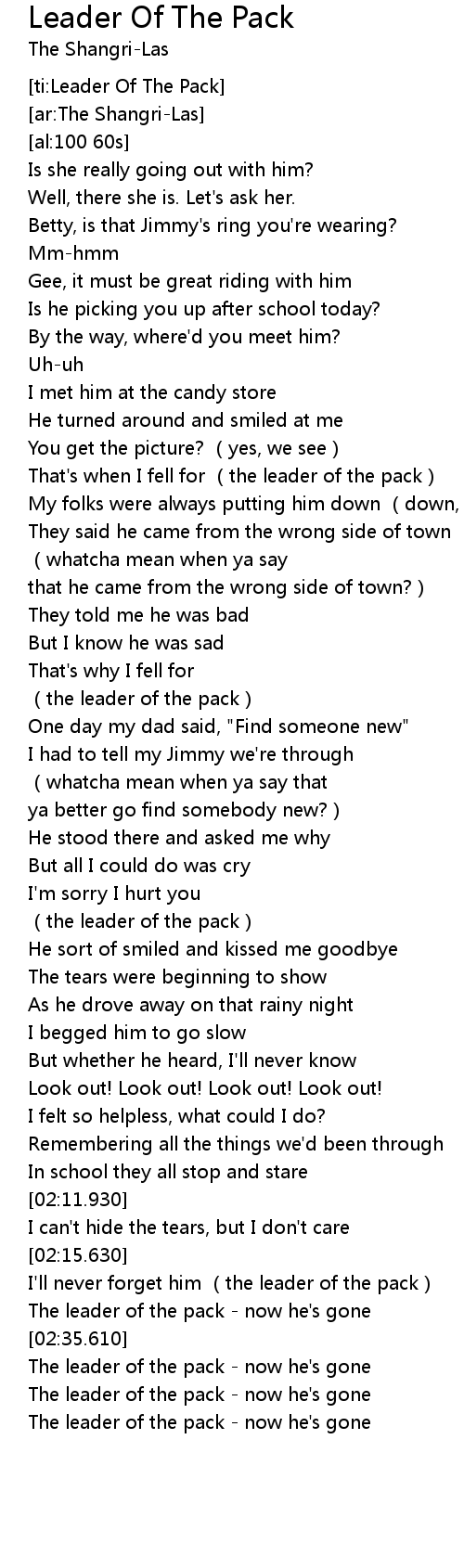 | [00:57.140] | (the leader of the pack) |