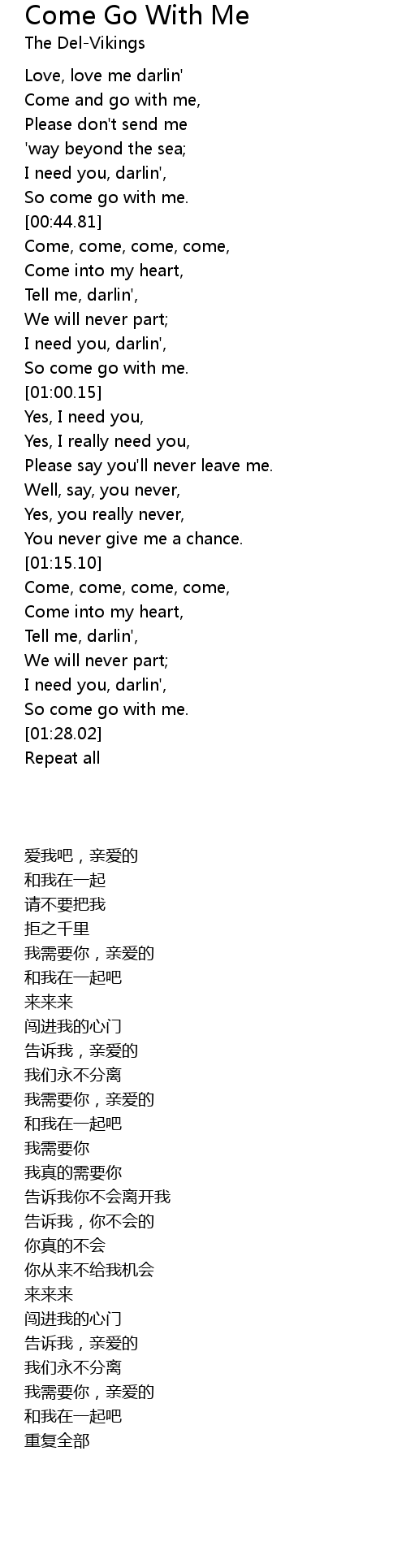 | [00:55.56] | So come go with me. |